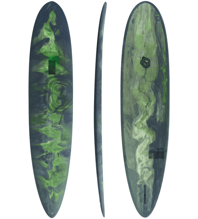 Traditional clean longboard outline, rounded pin. The outline is relatively balanced with the widest point slightly forward, it does carry some width to around 3ft from the tail before pulling in to a performance shortboard outline, so the board can be pumped for speed easily and can be surfed freely off the tail.
